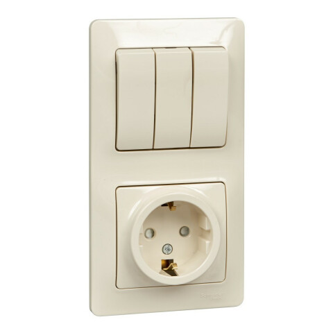 встраиваемый блок, вертикальный, 1 розетка, 3 клавиши, IP20