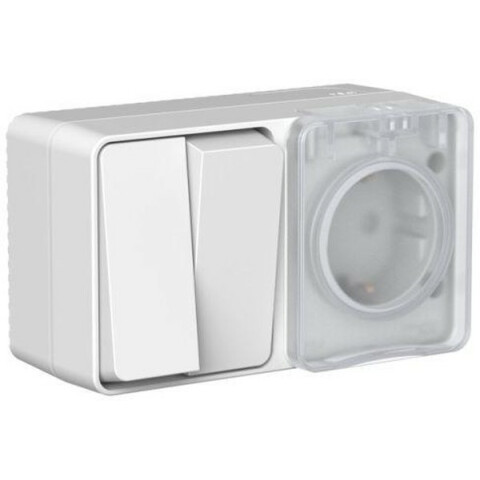 накладной блок, горизонтальный, 1 розетка, с крышкой, 2 клавиши, IP54