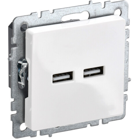 розетка двойная USB A + A, 3.1 А, встраиваемая, IP20, белая