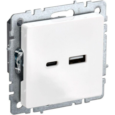 Бренд: IEKрозетка двойная USB A + C, 18 Вт, встраиваемая, IP20, белая