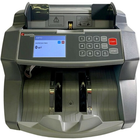 Бренд: Cassidaсчётчик банкнот с LCD экраном, скорость счёта: 1150 банкнот/мин, ёмкость накопителя: 200 банкнот, ёмкость загрузчика: 500 банкнот, тип детекции: Антистокс/по размеру/оптической плотности, работает с купюрами новых номиналов 200 и 2000 руб