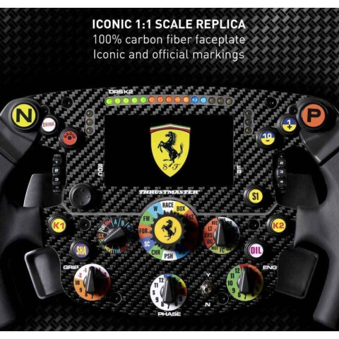 Бренд: ThrustMastercъёмное колесо Thrustmaster Formula Ferrari SF1000 edition, руль-реплика оснащен интерактивным дисплеем 109 мм и 21 светодиодом, возможность беспроводной телеметриии (Wi-Fi) до 69 основных эл. информации, лицевая панель из 100%-го углеродного волокна