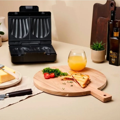 сэндвичница, 1000 Вт, панель с антипригарным покрытием на 2 порции, теплоизолированная ручка, индикация нагрева, защита от перегрева, шнур 0.85 м