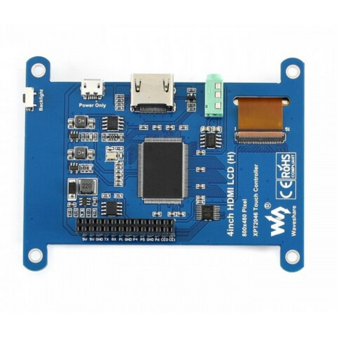 резистивный сенсорный дисплей без корпуса для Raspberry Pi 3, 4", 800x480, IPS матрица, вход: HDMI, питание по USB