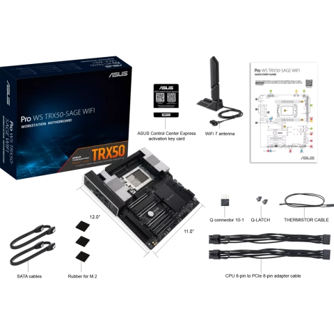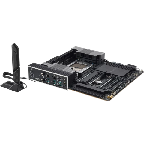 SSI CEB, 1x socket TR5, AMD TRX50, 4x DDR5, 4xSATA-III (6 Гб/с), 2.5 Gigabit Ethernet, 10 Gigabit Ethernet, Wi-Fi, Bluetooth