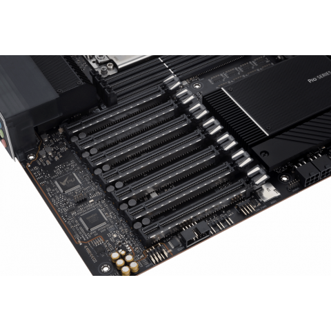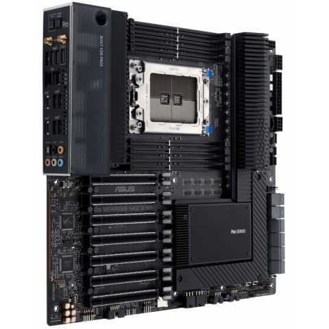 EATX, 1x socket sWRX8, AMD WRX80, 8x DDR4, 8xSATA-III (6 Гб/с), 2x10 Gigabit Ethernet, Wi-Fi, Bluetooth