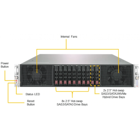 2U, 2 x LGA 3647, Intel C621, 16 x DDR4, 10 x 2.5" SATA, Gigabit Ethernet (1000 Мбит/с), 2000 Вт