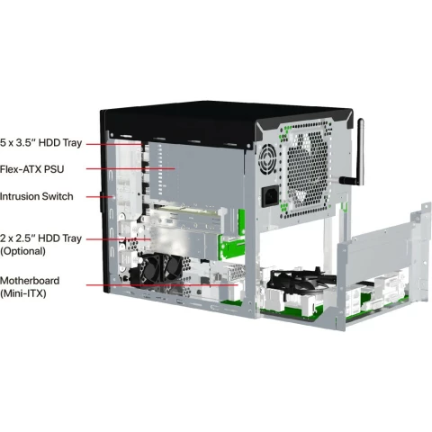 Mini-Tower, Mini-ITX, 5 внешних 3.5", блок питания: без БП