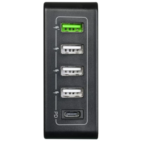 сетевое зарядное устройство, мощность 60 Вт, сила тока 3 A, 4x USB, 1x USB Type-C, быстрая зарядка