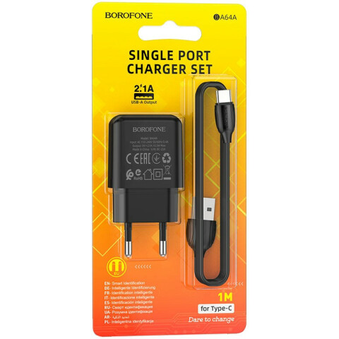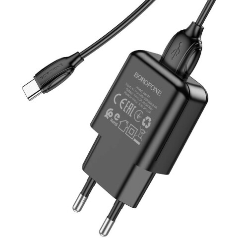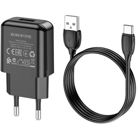 Сетевое зарядное устройство Borofone BA64A Black + Type-C Cable