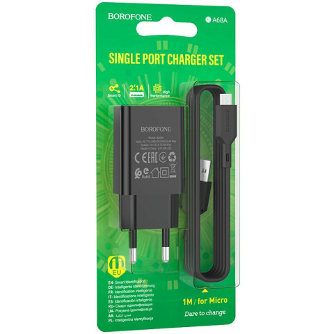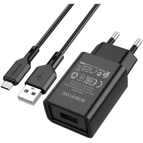 Бренд: Borofoneсетевое зарядное устройство, сила тока 2.1 A, 1x USB, кабель microUSB