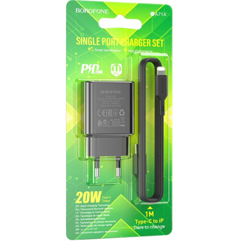 Сетевое зарядное устройство Borofone BA71A Black + Lightning Cable