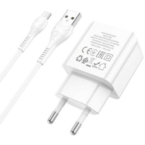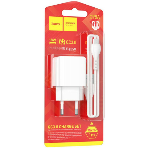 Бренд: HOCOсетевое зарядное устройство, мощность 18 Вт, 1x USB, быстрая зарядка, кабель microUSB