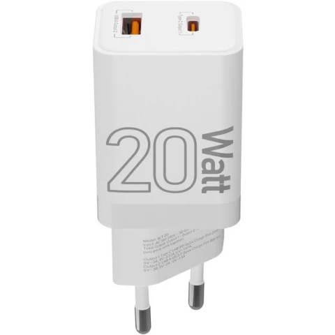 сетевое зарядное устройство, мощность 20 Вт, 1x USB, 1x USB Type-C, быстрая зарядка