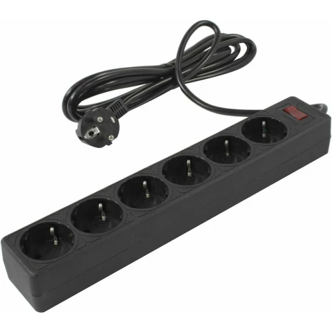 сетевой фильтр, 6 розеток, макс. нагрузка 2200 Вт, макс. ток 10 А, заземление, выключатель на корпусе, длина кабеля: 3 м, чёрный