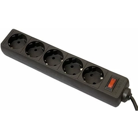 сетевой фильтр, 5 розеток, макс. нагрузка 2200 Вт, заземление, выключатель на корпусе, длина кабеля: 5 м, чёрный