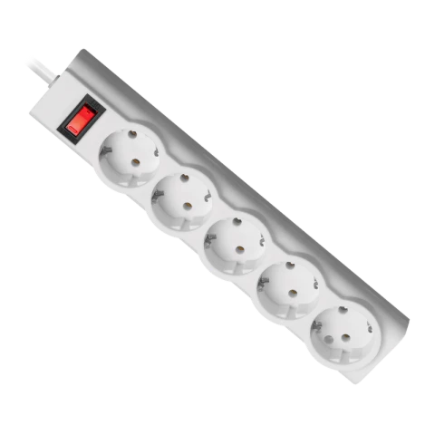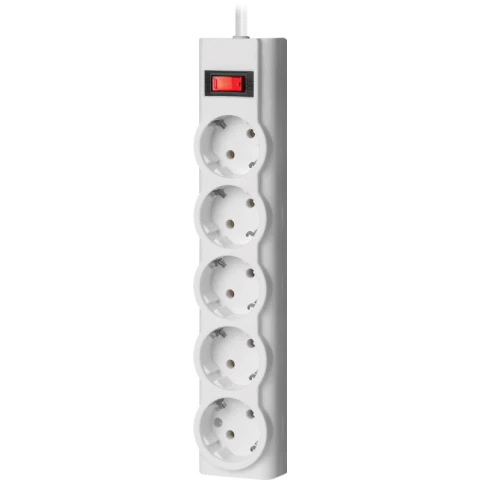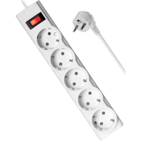 сетевой фильтр, 5 розеток, макс. нагрузка 2200 Вт, макс. ток 10 А, заземление, выключатель на корпусе, длина кабеля: 1.8 м, белый