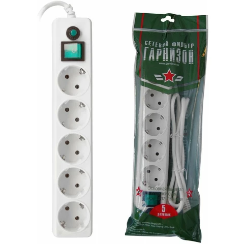 сетевой фильтр, 5 розеток, 1.4 м, белый