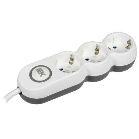 удлинитель, 3 розетки, макс. нагрузка 3500 Вт, макс. ток 16 А, выключатель на корпусе, заземление, шторки на розетке, длина кабеля: 5 м, белый