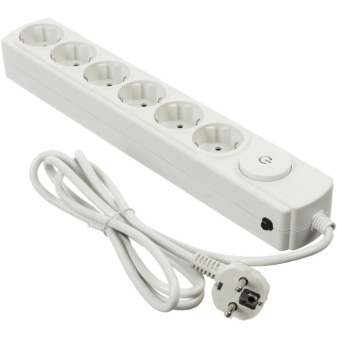 сетевой фильтр, 6 розеток, макс. ток 16 А, выключатель на корпусе, заземление, длина кабеля: 3 м, белый