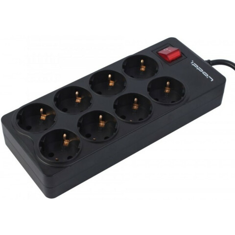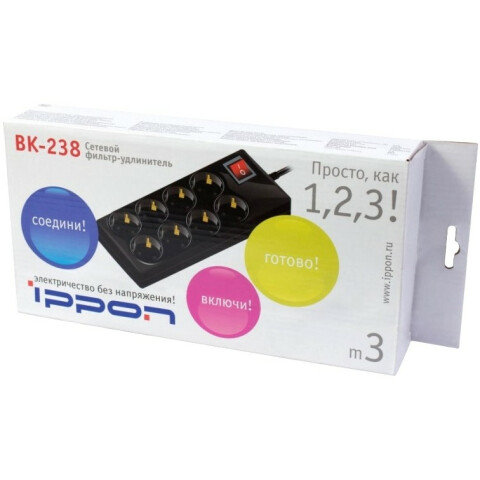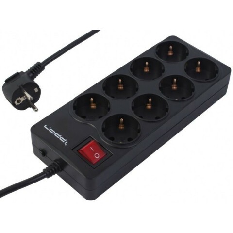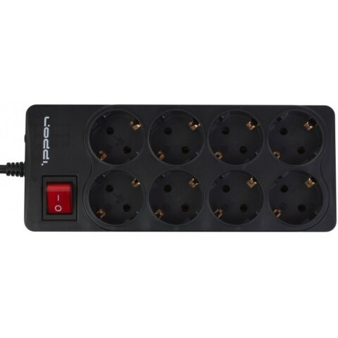 сетевой фильтр, 8 розеток, макс. нагрузка 2200 Вт, макс. ток 10 А, заземление, выключатель на корпусе, длина кабеля: 3 м, чёрный