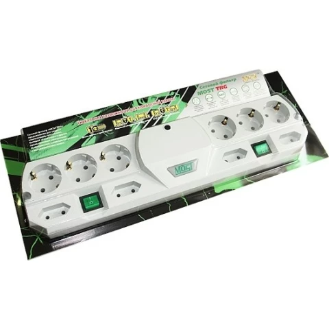 Бренд: Mostсетевой фильтр, 10 розеток, макс. нагрузка 2200 Вт, заземление, выключатель на корпусе, длина кабеля: 5 м, белый