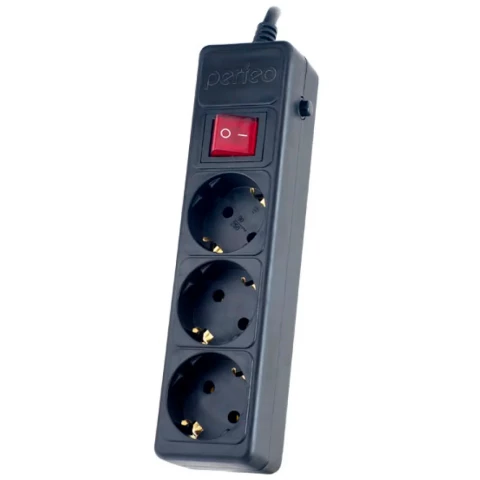 сетевой фильтр, 3 розетки, макс. нагрузка 2300 Вт, макс. ток 10 А, заземление, выключатель на корпусе, длина кабеля: 3 м, чёрный
