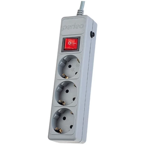 сетевой фильтр, 3 розетки, макс. нагрузка 2300 Вт, макс. ток 10 А, заземление, выключатель на корпусе, длина кабеля: 3 м, серый