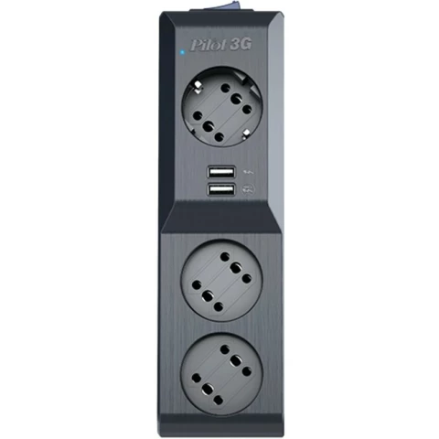 сетевой фильтр, 3 розетки, макс. нагрузка 2200 Вт, макс. ток 10 А, USB, выключатель на корпусе, длина кабеля: 5 м, чёрный