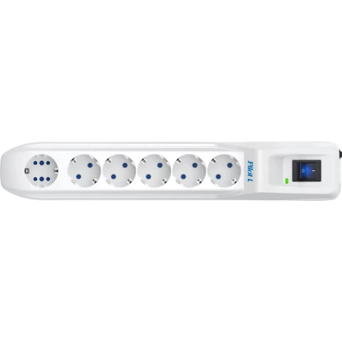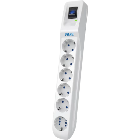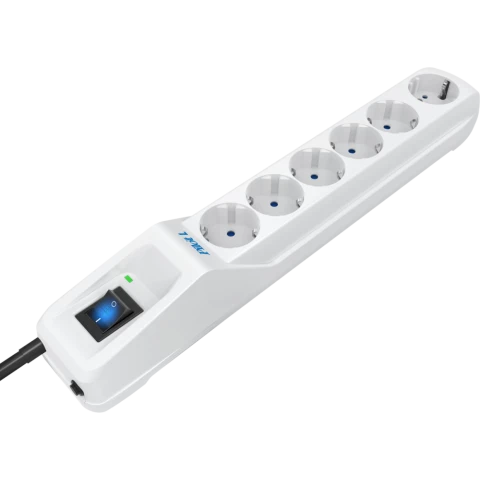 сетевой фильтр, 6 розеток, макс. нагрузка 2200 Вт, макс. ток 10 А, выключатель на корпусе, заземление, шторки на розетке, длина кабеля: 1.8 м, белый