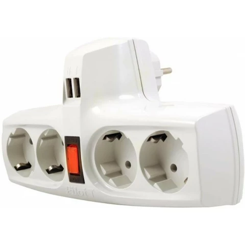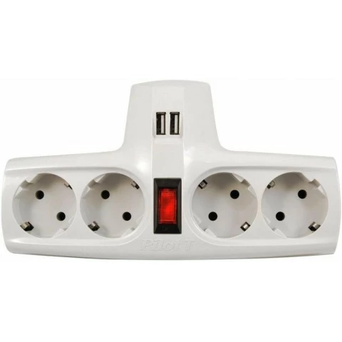 сетевой фильтр, 4 розетки, макс. нагрузка 3300 Вт, макс. ток 15 А, USB, заземление, выключатель на корпусе, бежевый