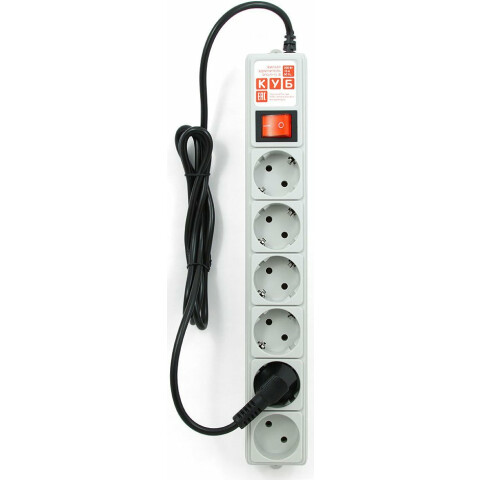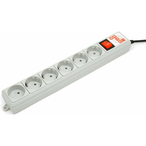 сетевой фильтр, 6 розеток (EURO), двухполюсный выключатель, длина кабеля: 0.5 м, серый