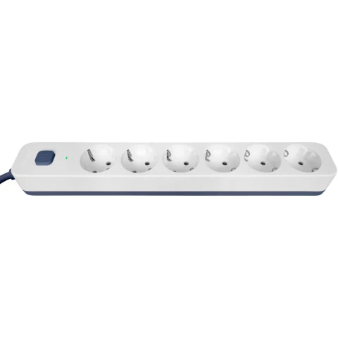 сетевой фильтр, 6 розеток, макс. нагрузка 4000 Вт, макс. ток 16 А, заземление, выключатель на корпусе, длина кабеля: 3 м, белый
