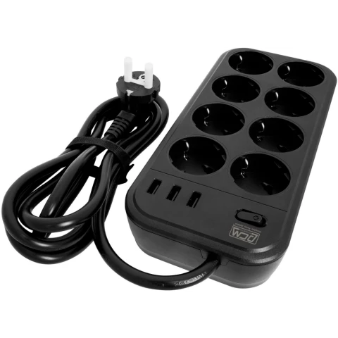 сетевой фильтр, 8 розеток, макс. нагрузка 4000 Вт, макс. ток 16 А, USB, заземление, выключатель на корпусе, длина кабеля: 1.8 м, чёрный