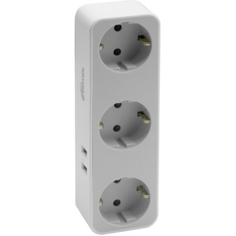 сетевой фильтр, 3 розетки, макс. нагрузка 4000 Вт, макс. ток 16 А, USB, заземление, шторки на розетке, белый