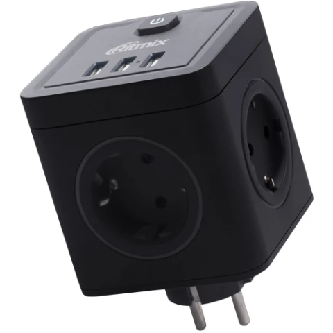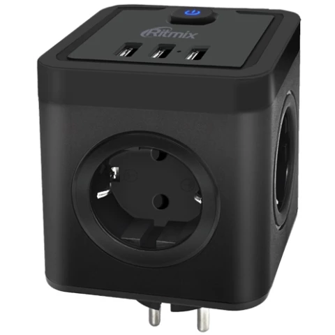 сетевой фильтр, 4 розетки, макс. нагрузка 4000 Вт, макс. ток 16 А, USB, заземление, выключатель на корпусе, шторки на розетке, чёрный
