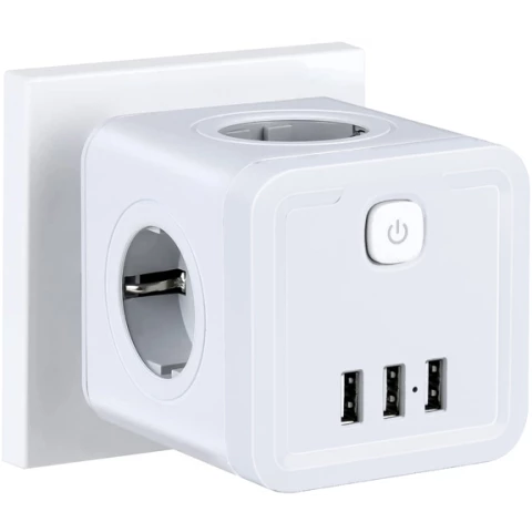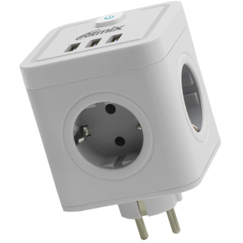 сетевой фильтр, 4 розетки, макс. нагрузка 4000 Вт, макс. ток 16 А, USB, заземление, выключатель на корпусе, шторки на розетке, белый