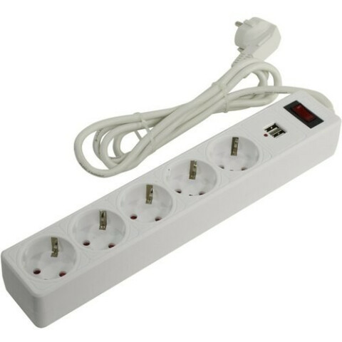 Бренд: SmartBuyсетевой фильтр, 5 розеток, макс. нагрузка 2200 Вт, макс. ток 10 А, USB, выключатель на корпусе, заземление, длина кабеля: 1.8 м, белый