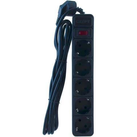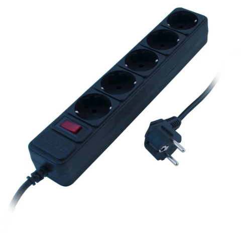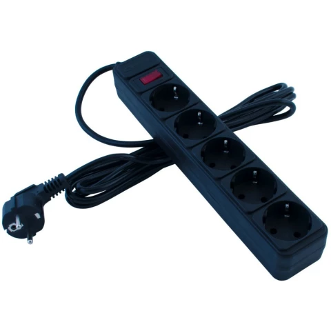 сетевой фильтр, 5 розеток, макс. нагрузка 2200 Вт, макс. ток 10 А, заземление, выключатель на корпусе, длина кабеля: 3 м, чёрный