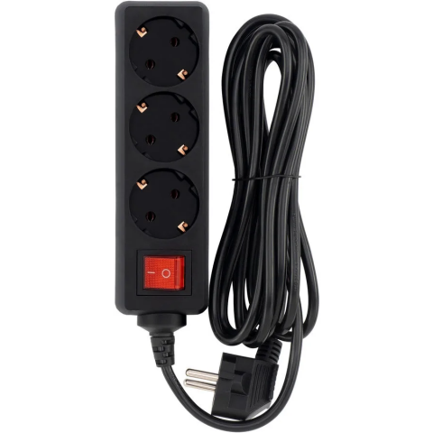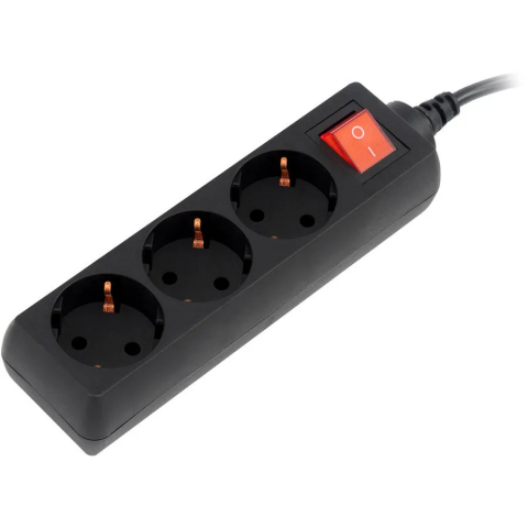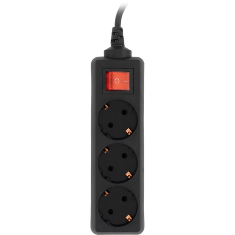 сетевой фильтр, 3 розетки, макс. нагрузка 1500 Вт, макс. ток 7 А, заземление, выключатель на корпусе, длина кабеля: 1 м, чёрный