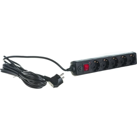 удлинитель, 5 розеток, макс. нагрузка 3500 Вт, макс. ток 16 А, заземление, выключатель на корпусе, длина кабеля: 5 м, чёрный