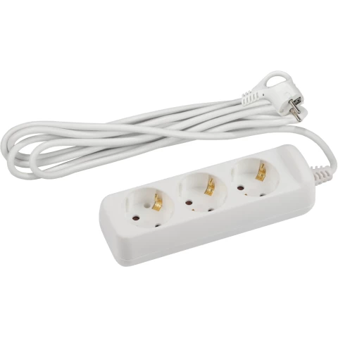 удлинитель, 3 розетки, макс. нагрузка 3500 Вт, макс. ток 16 А, заземление, длина кабеля: 7 м, белый