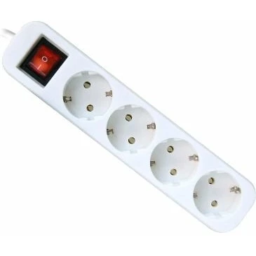 сетевой удлинитель, 4 розетки с заземлением, выключатель, максимальный ток/мощность: 16A/3.5кВт, 5м