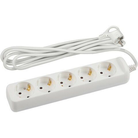 удлинитель, 5 розеток, макс. нагрузка 3500 Вт, макс. ток 16 А, заземление, длина кабеля: 3 м, белый