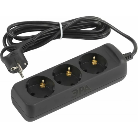 Бренд: ЭРАудлинитель, 3 розетки, макс. нагрузка 2200 Вт, макс. ток 10 А, заземление, длина кабеля: 3 м, чёрный