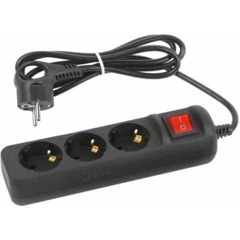 удлинитель, 3 розетки, макс. нагрузка 2200 Вт, макс. ток 10 А, заземление, выключатель на корпусе, длина кабеля: 1.5 м, чёрный