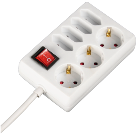 удлинитель, 7 розеток, макс. нагрузка 3500 Вт, выключатель на корпусе, заземление, длина кабеля: 1.4 м, белый