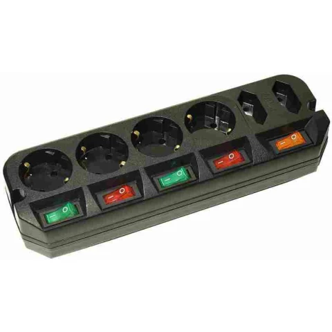 | удлинитель, 6 розеток, макс. нагрузка 3500 Вт, заземление, выключатель на корпусе, длина кабеля: 5 м, чёрный | Цена по запросу |