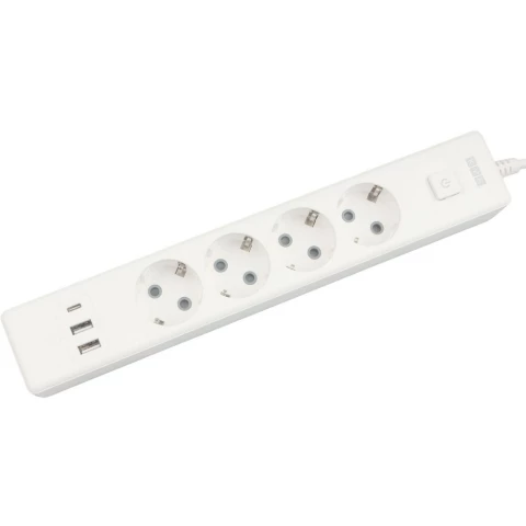 удлинитель, 4 розетки, макс. нагрузка 3500 Вт, макс. ток 16 А, USB, заземление, выключатель на корпусе, шторки на розетке, длина кабеля: 1.9 м, белый
