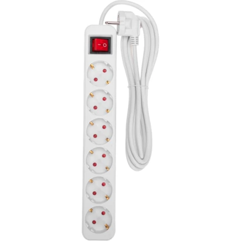 | удлинитель, 6 розеток, макс. нагрузка 1300 Вт, макс. ток 6 А, заземление, выключатель на корпусе, шторки на розетке, длина кабеля: 3 м, белый | Цена по запросу |